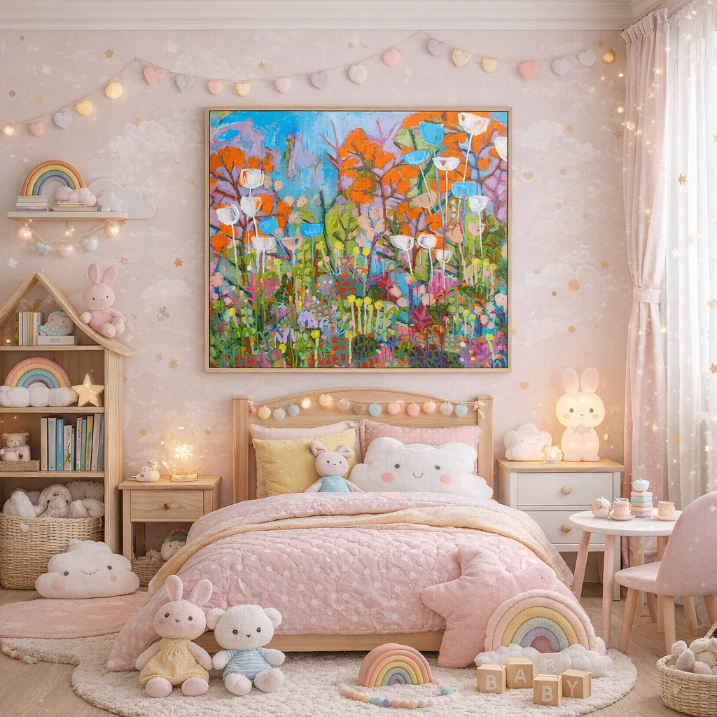Obraz nebo reprodukce může být první „opravdová“ věc v jejich prostoru – něco, co s nimi zůstane déle než hračky. Podívejte se, jak krásně mé obrazy fungují v dětských pokojích.