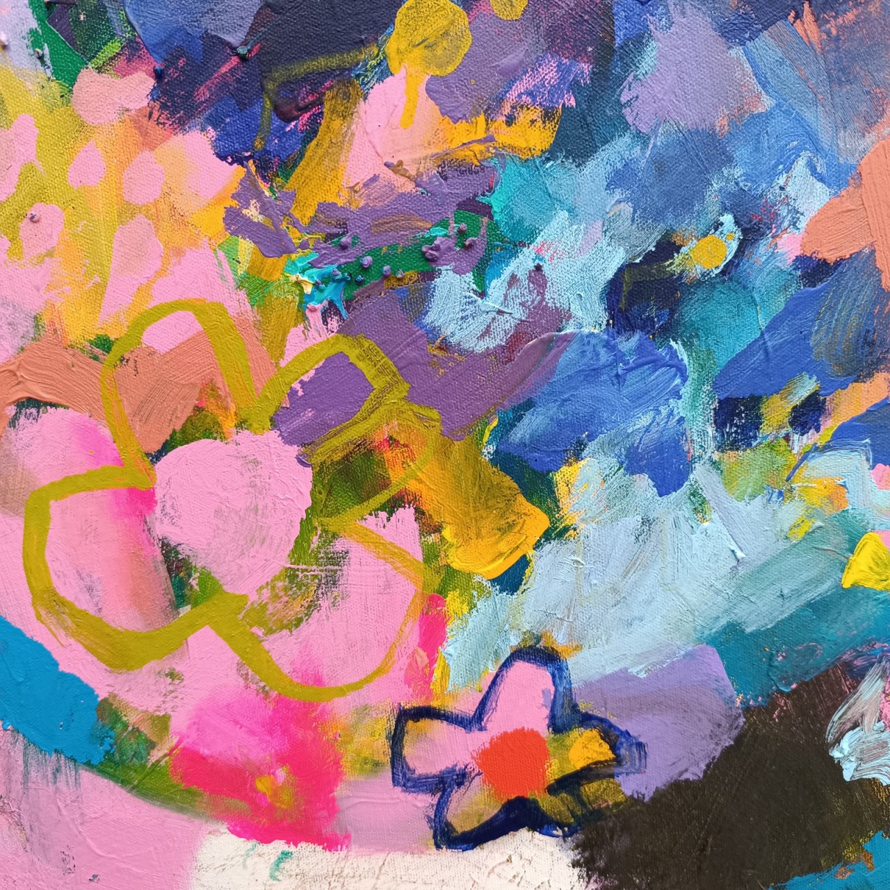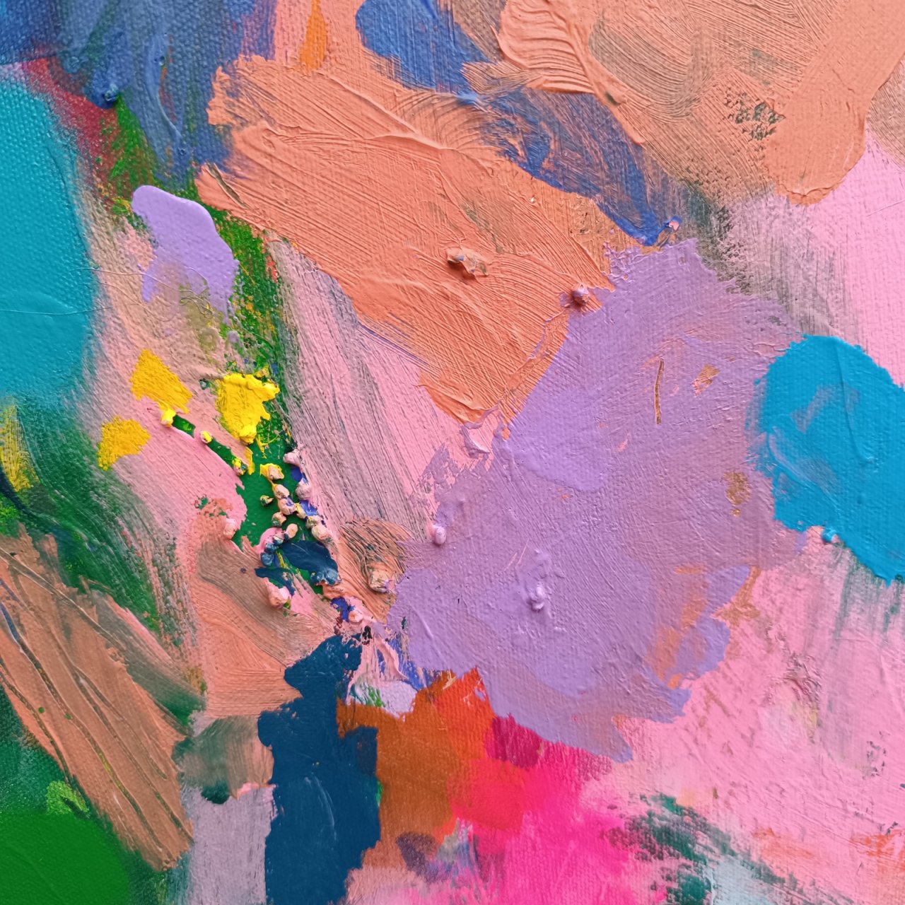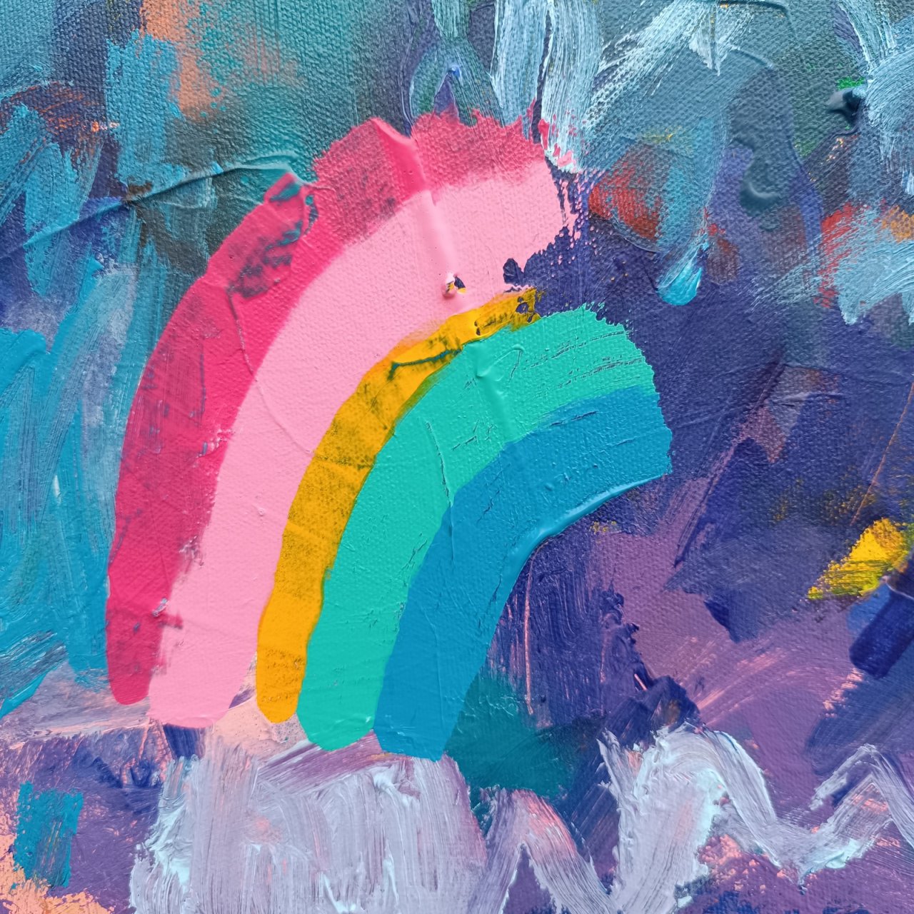 Abstraktní obraz na kulatém plátně o průměru 80 cm přináší kombinaci hluboké modře, vrstevnaté textury a jemných barevných přechodů. V obraze se objevuje duha, naznačené jarní mraky a rytmus padajícího deště, které společně vytvářejí dojem svěží jarní oblohy. Drobné abstraktní květy dodávají malbě lehkost a pocit probouzející se přírody. Díky výraznému vrstvení a kulatému formátu působí obraz jako živý, ale zároveň klidný prvek vhodný do moderního obývacího pokoje, vstupní haly, ložnice či kreativního pracovního prostoru.