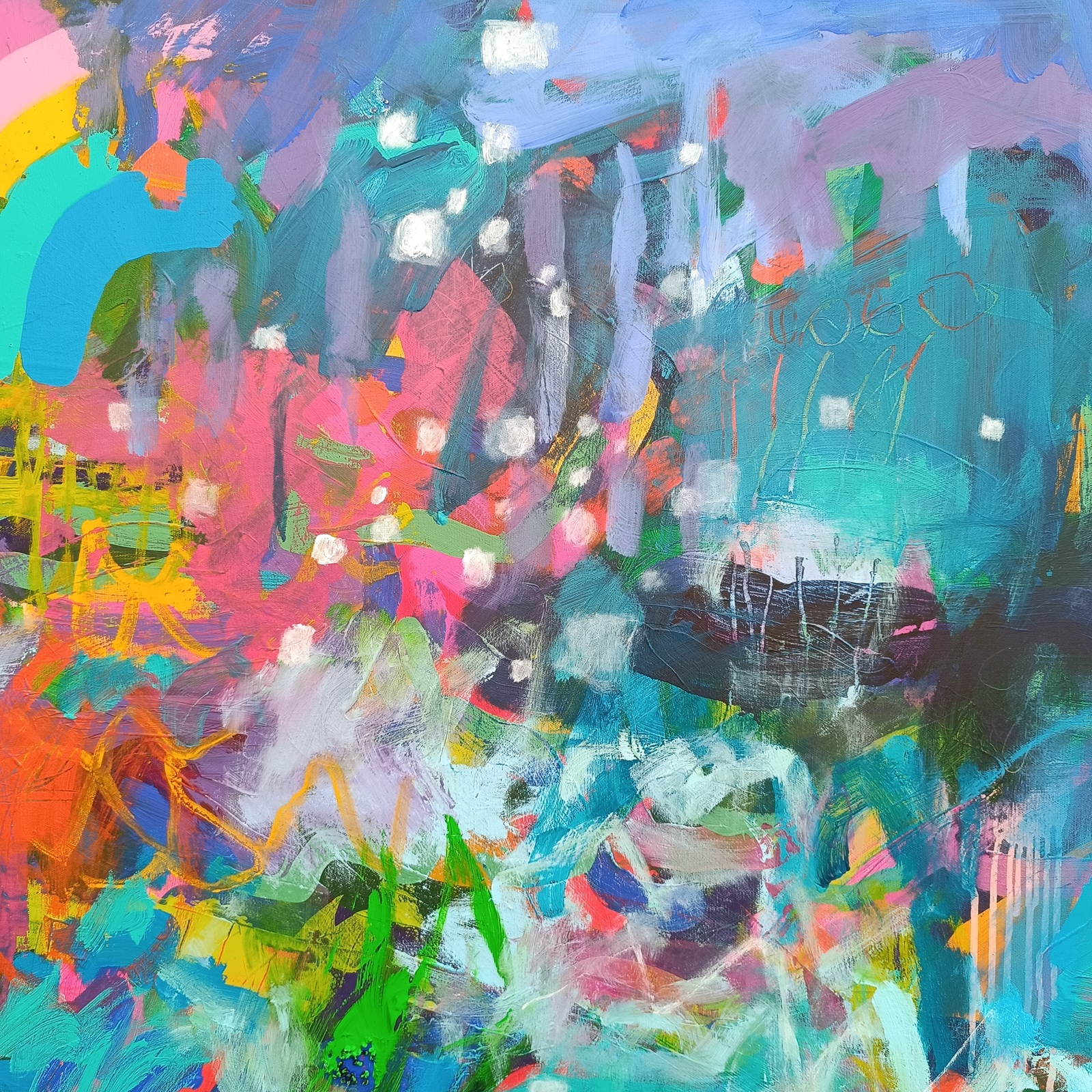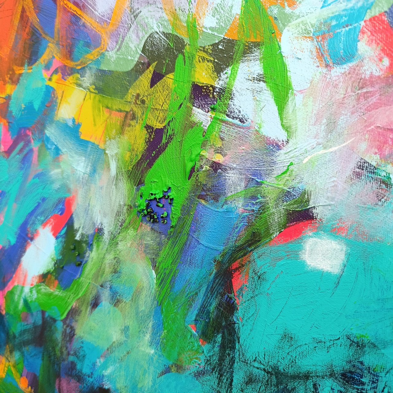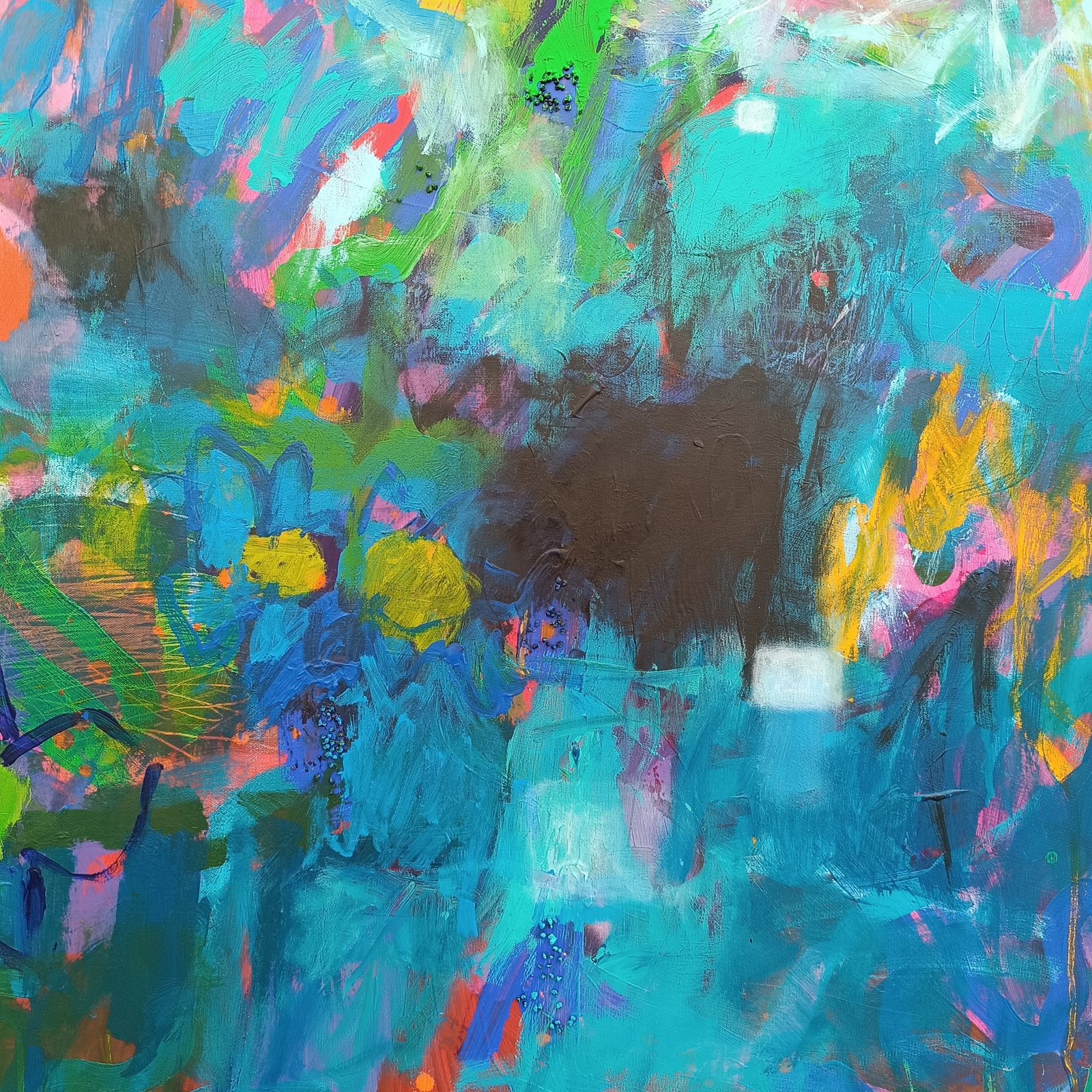 140 x 140 cm, akryl a smíšená média na plátně