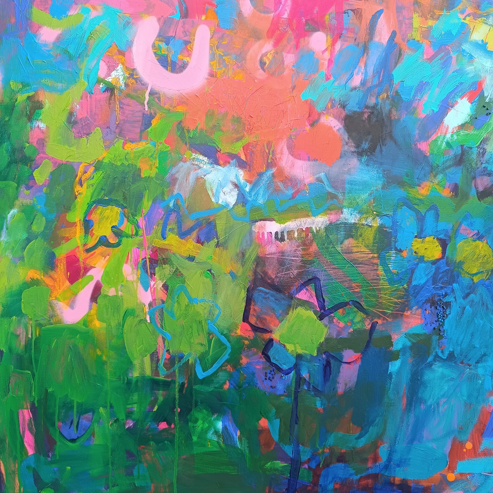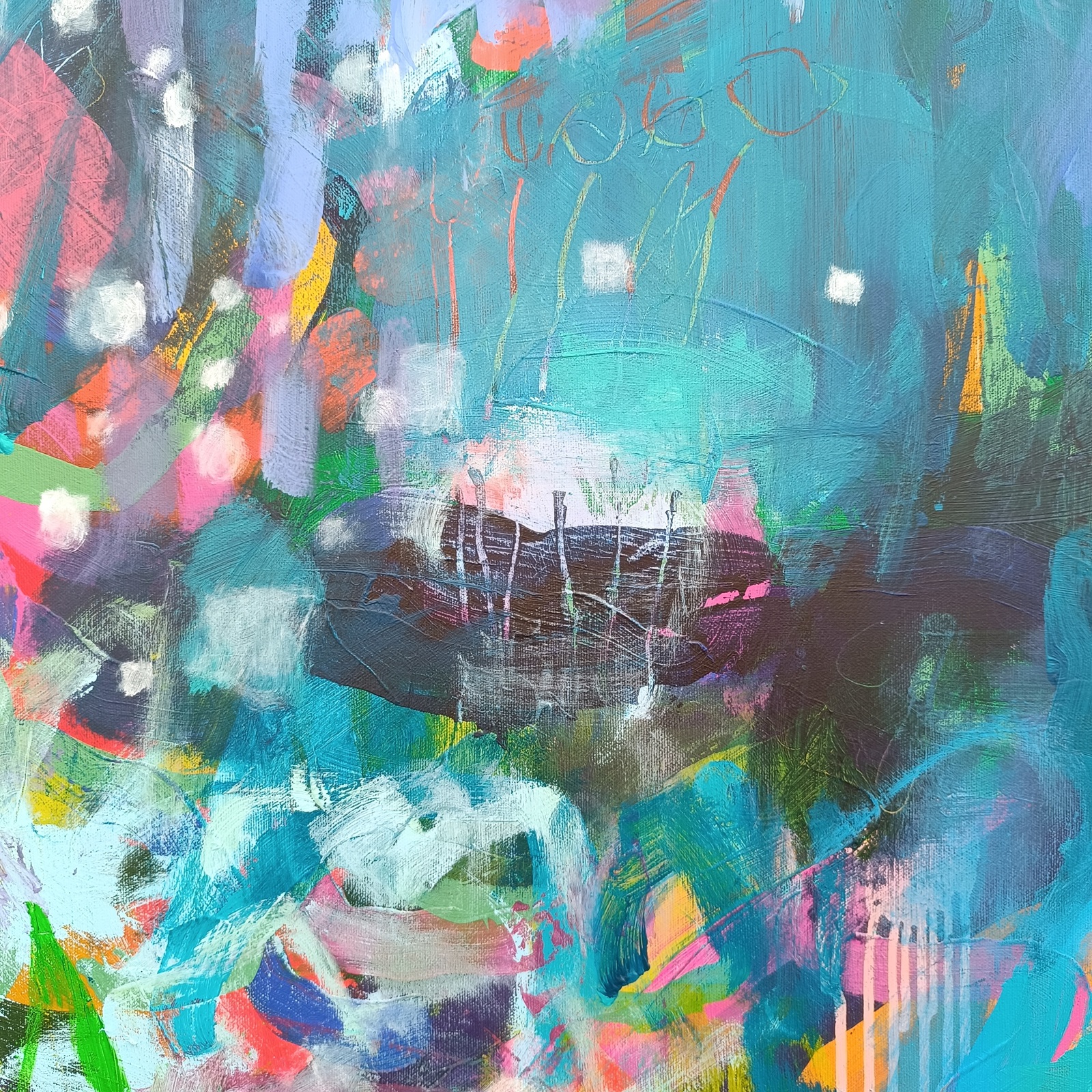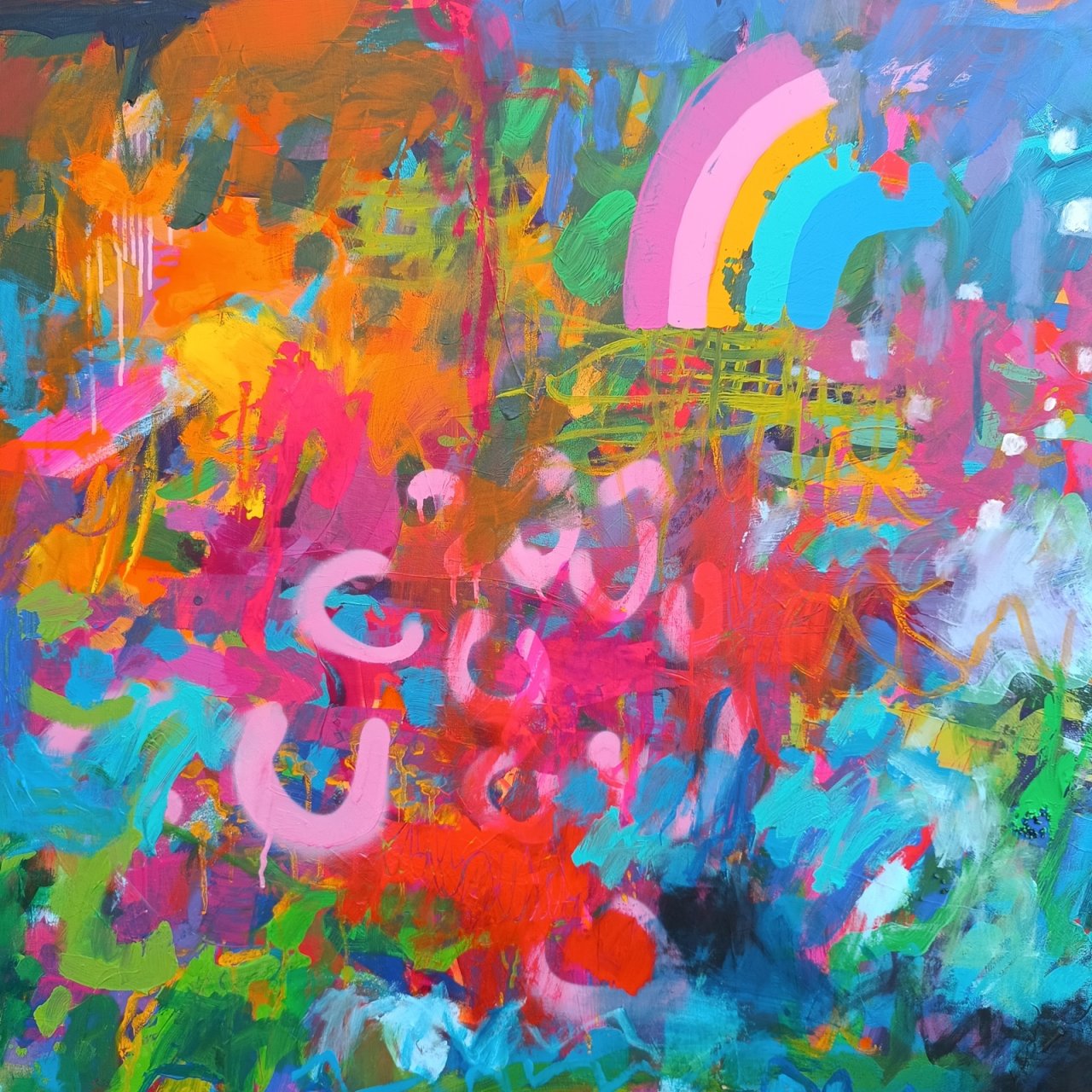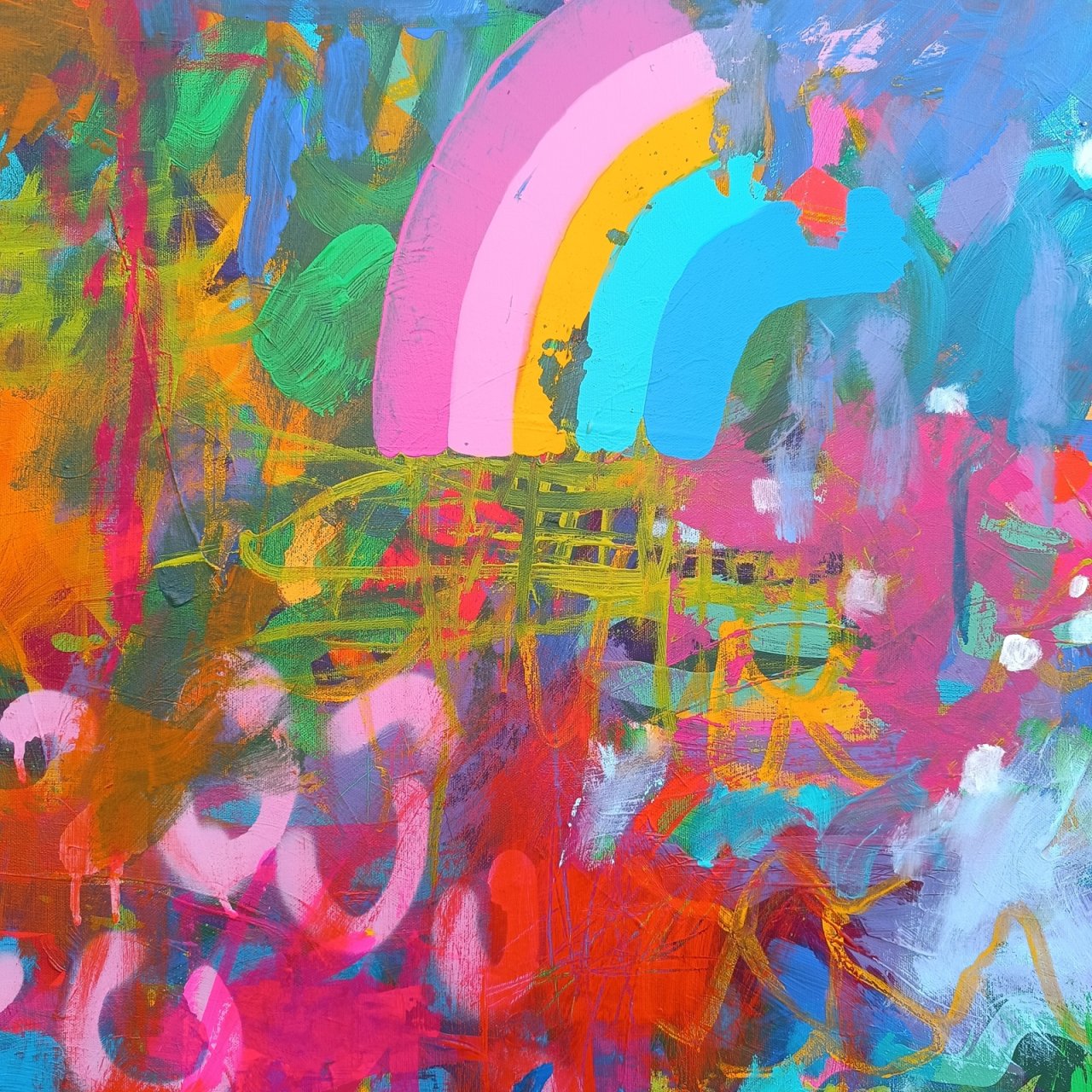 140 x 140 cm, akryl a smíšená média na plátně