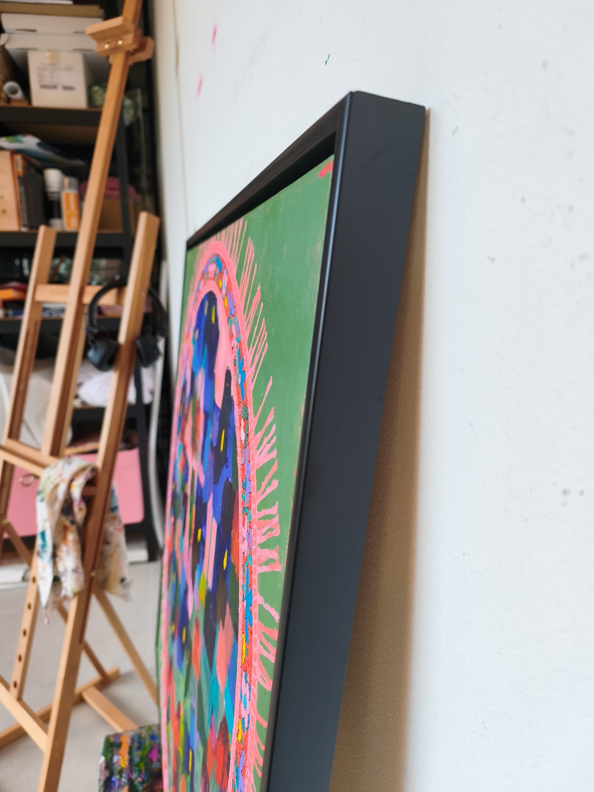 Na fotkách je obraz do rámu jen ilustračně vložený. Jedná se o plovoucí dřevěný rám v černém provedení. Pokud jej chcete bez rámu, vložte obraz do košíku přes tlačítko na první fotce. Pokud chcete, aby vám jej zarámovala, kliněte na tlačítko na druhé fotce.