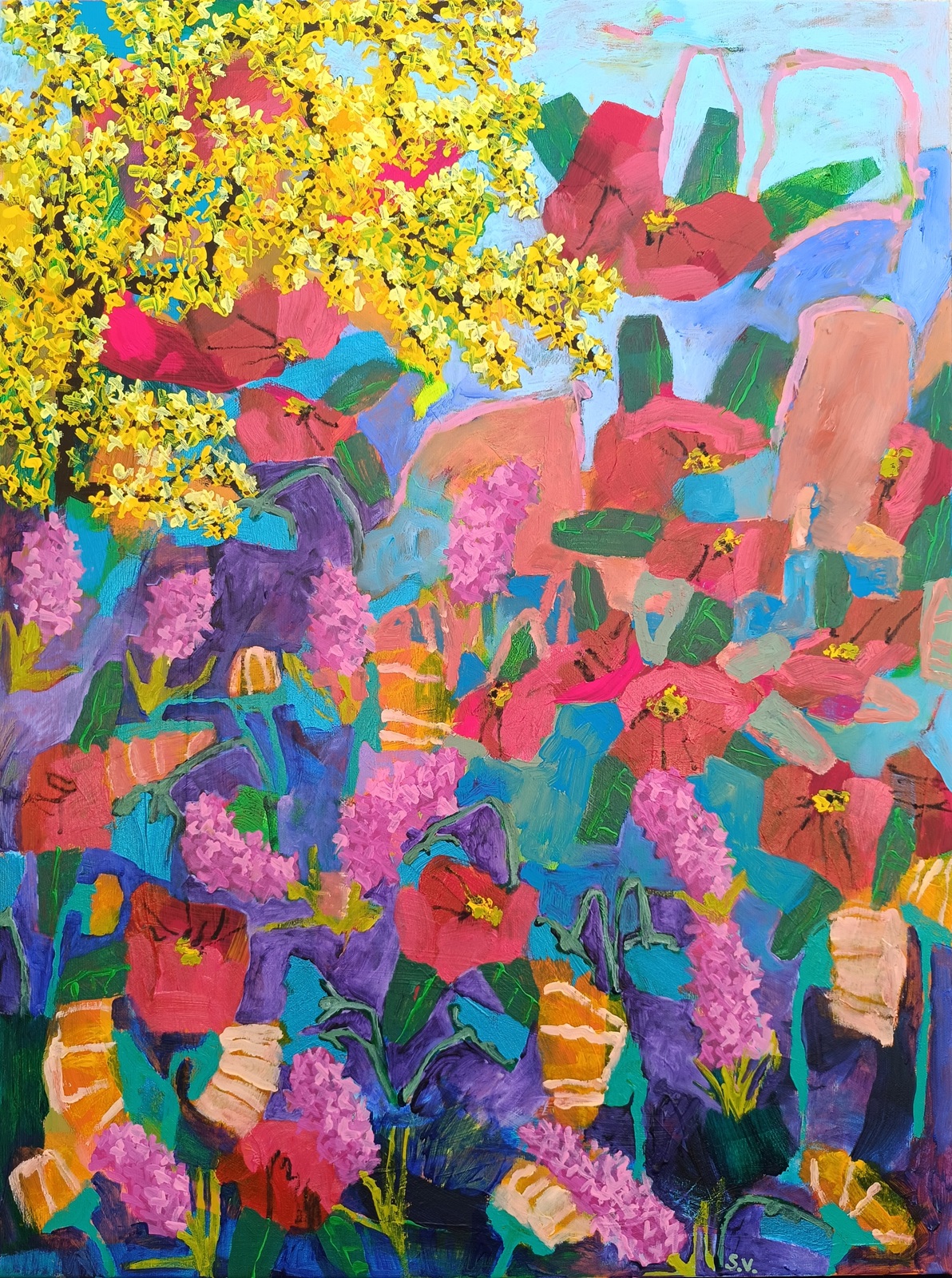 Obraz „Zlatý déšť“ zachycuje radostnou energii kvetoucího keře, jehož žluté květy prozáří každý prostor. Tato malba propojuje jasné tóny a jemné vrstvení barev, které působí živě a přirozeně. Ručně malovaný originál na plátně nese zepředu iniciály SV a celý podpis najdete zezadu. Hodí se jako decentní, ale výrazný akcent do moderního interiéru.