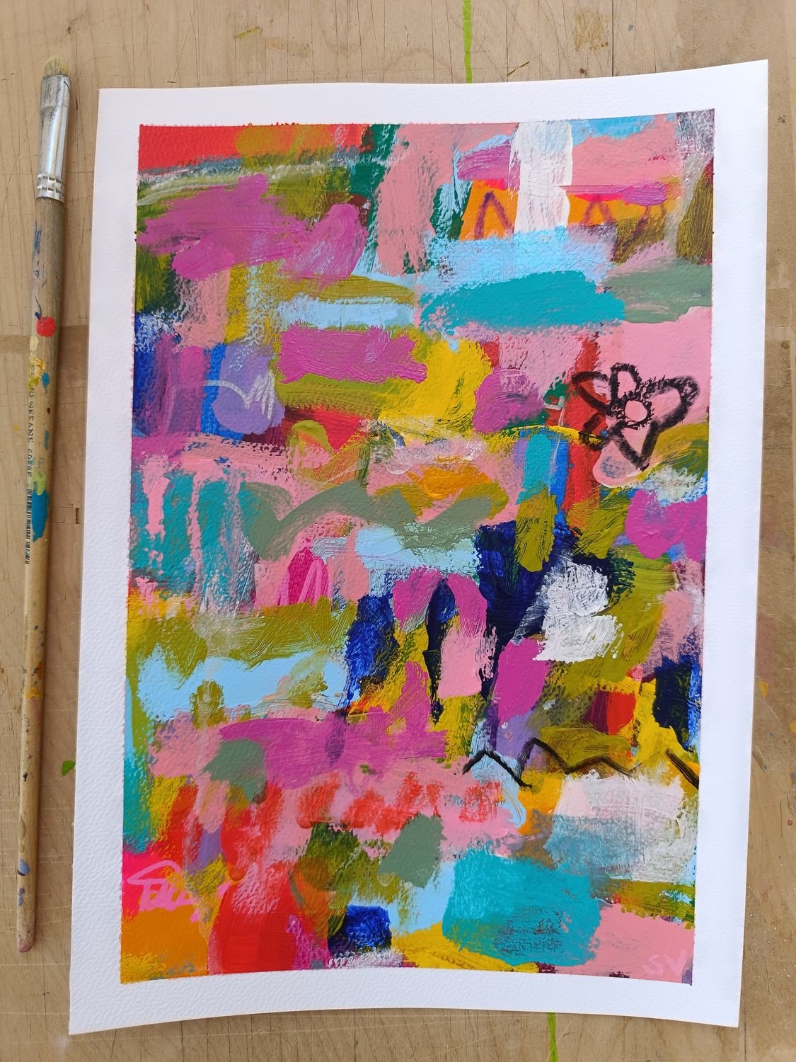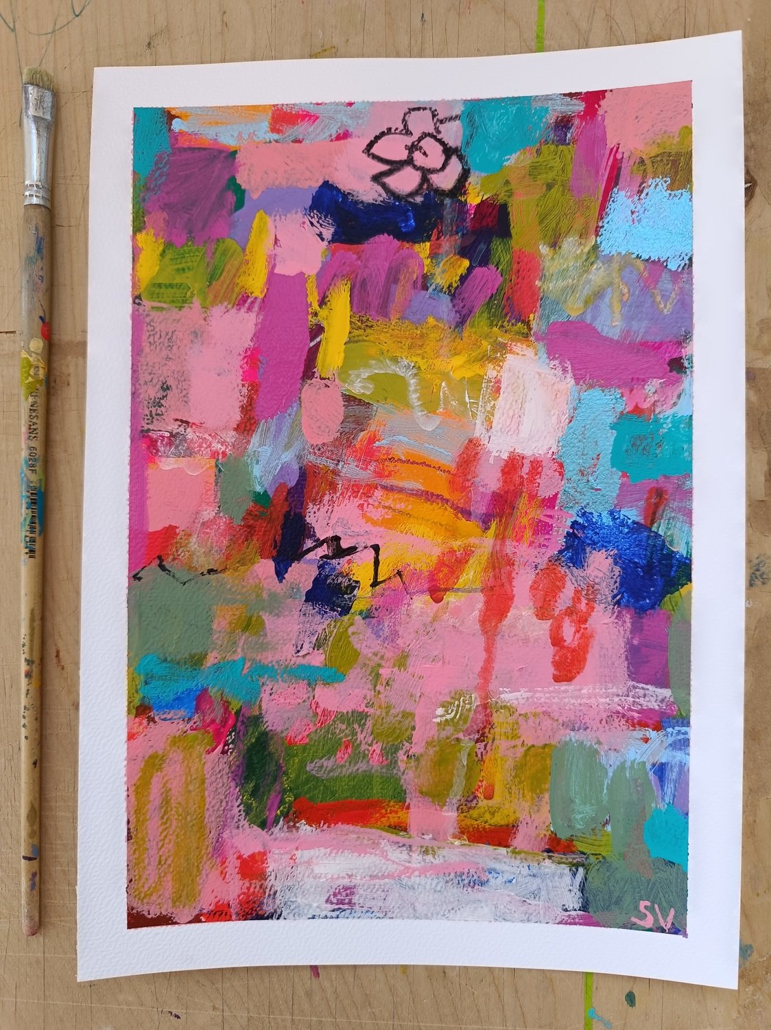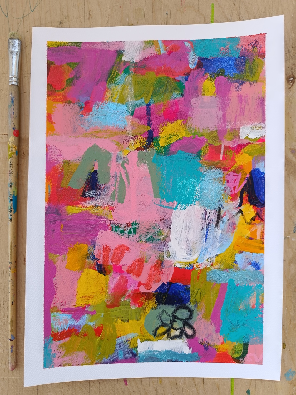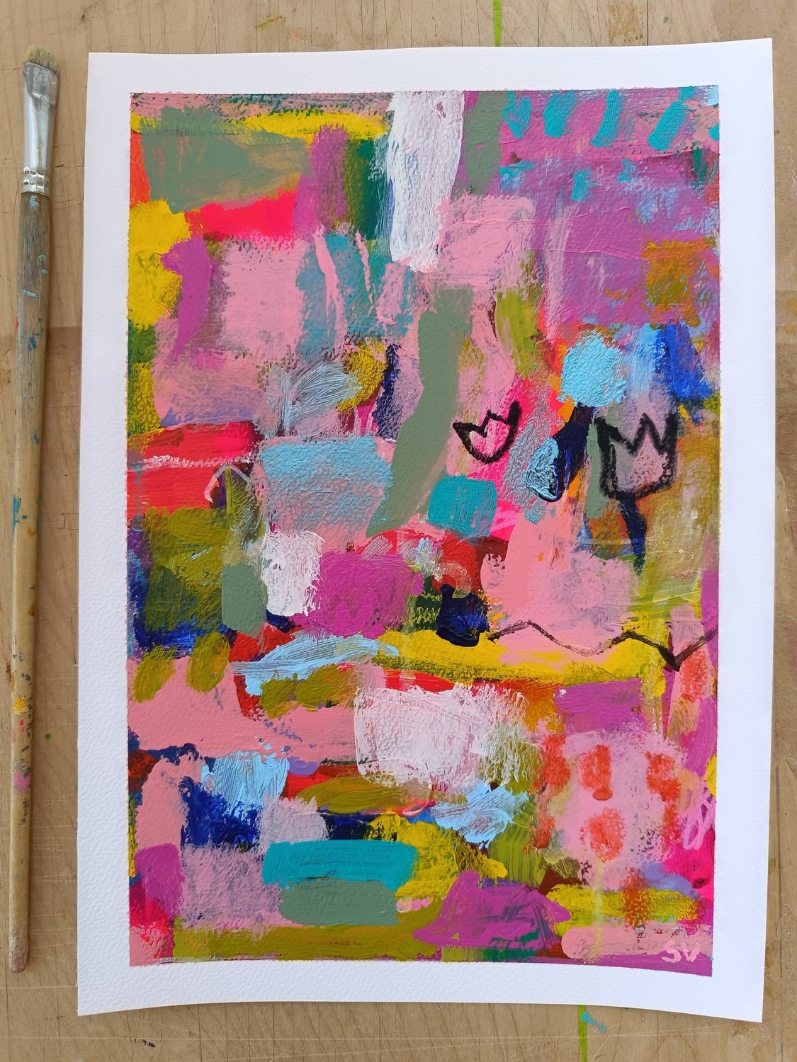 Abstraktní obrázky jsou namalované na akvarelovém papíře o gramáži 300 g/m2. Nejlépe budou vypadat v rámu pod sklem.