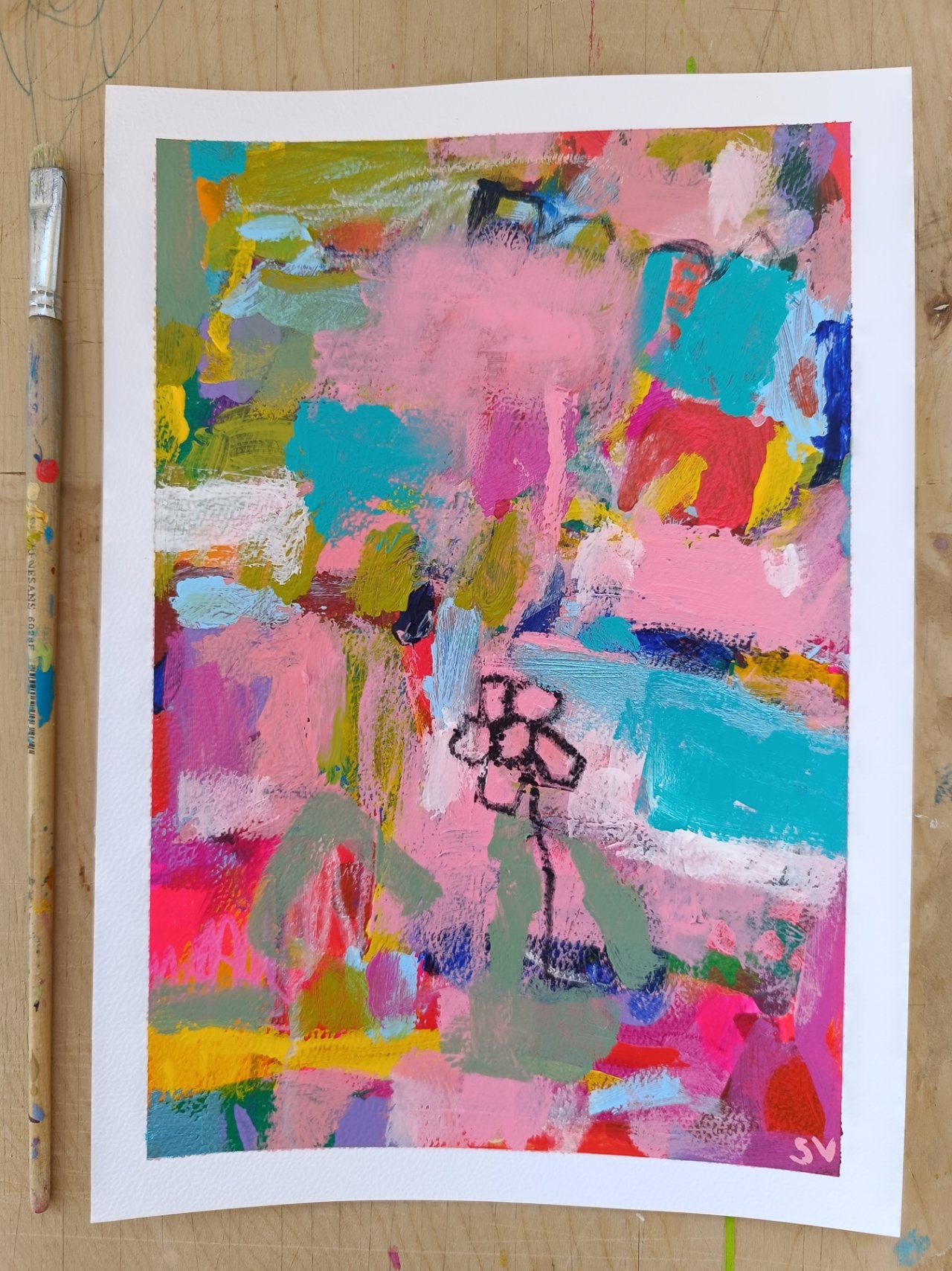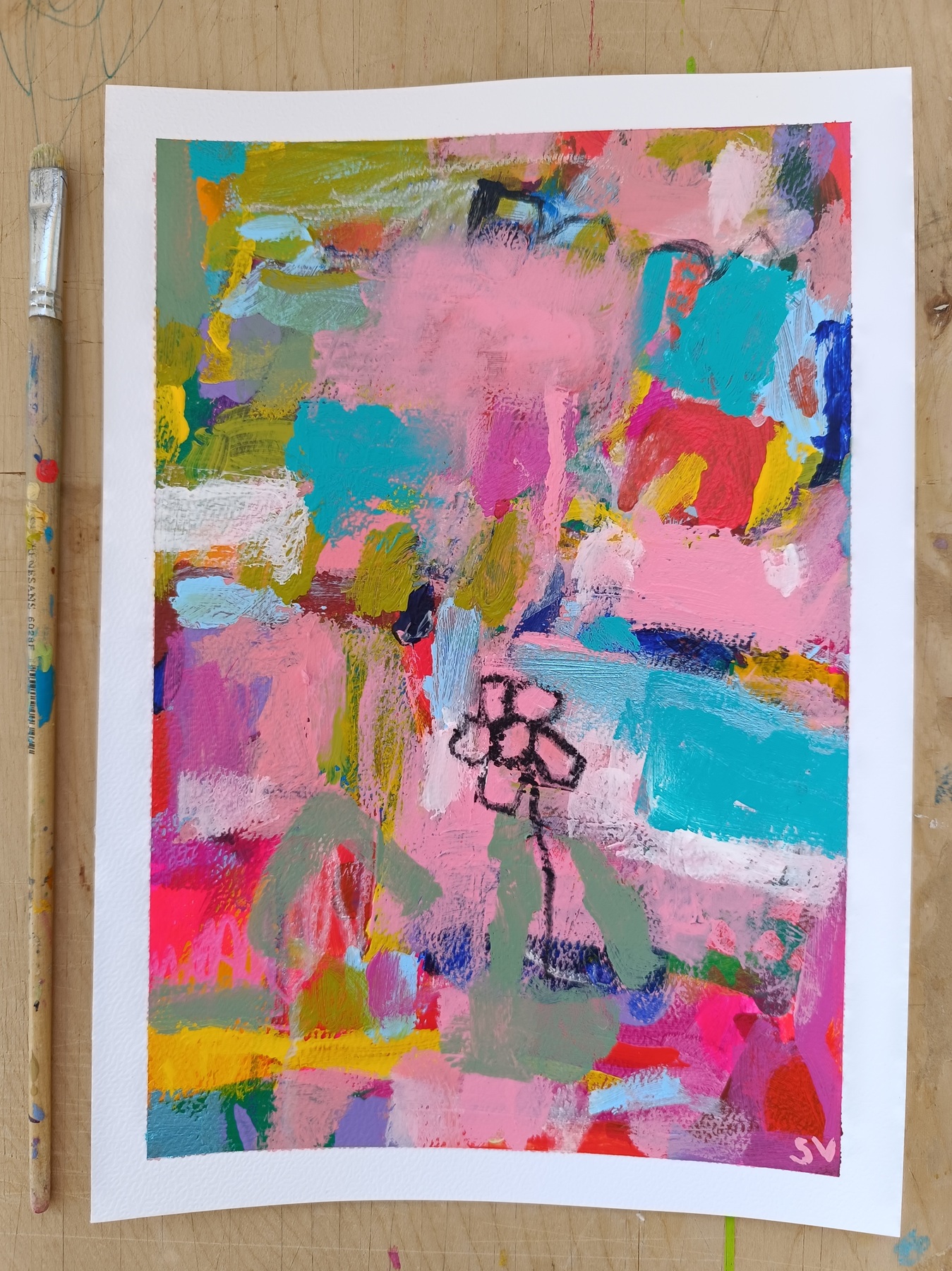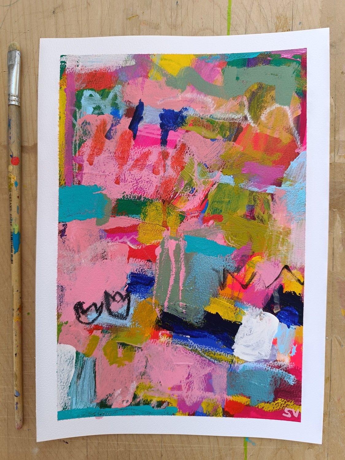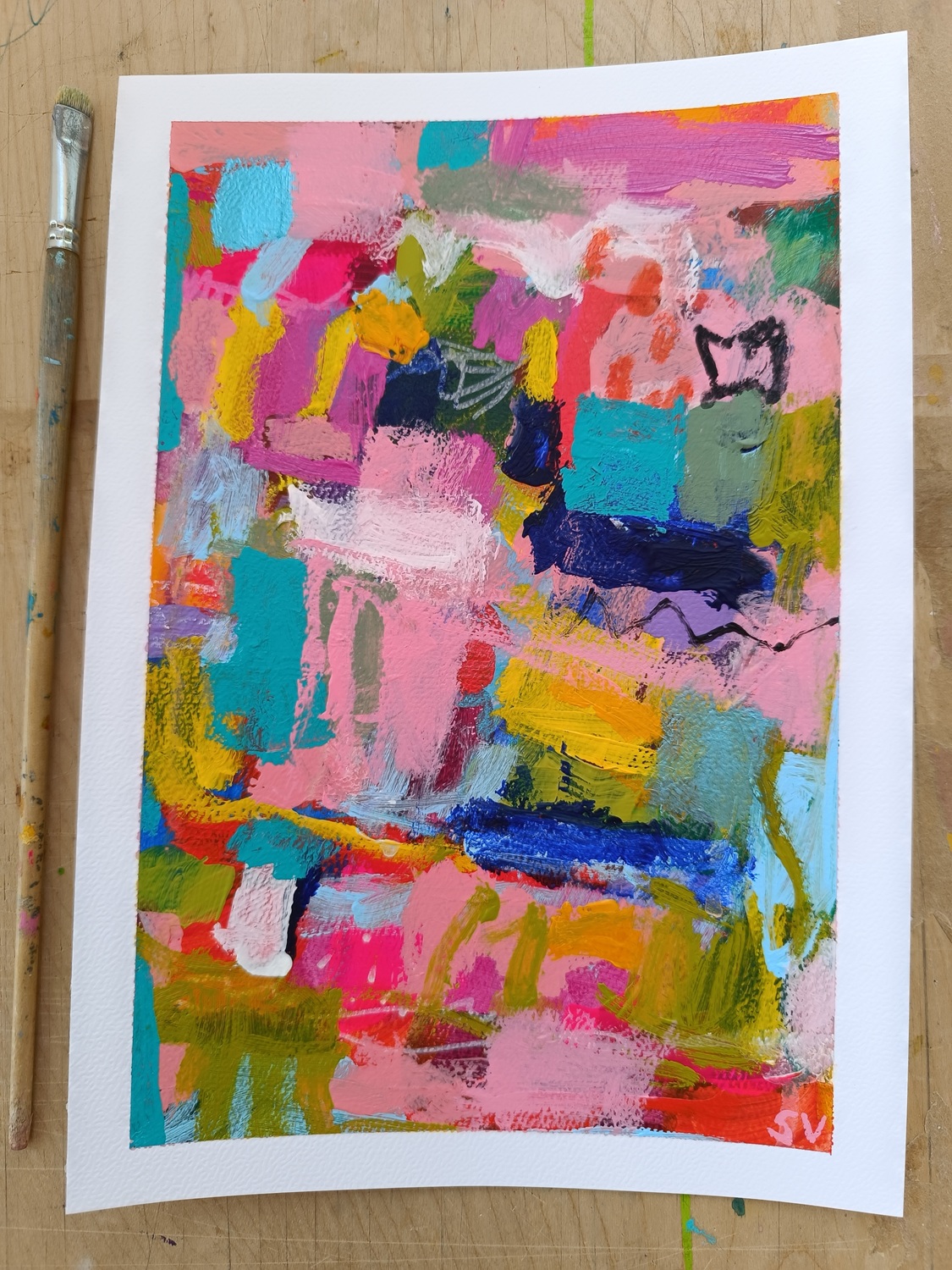 Abstraktní obrázky jsou namalované na akvarelovém papíře o gramáži 300 g/m2. Nejlépe budou vypadat v rámu pod sklem.