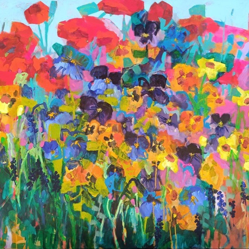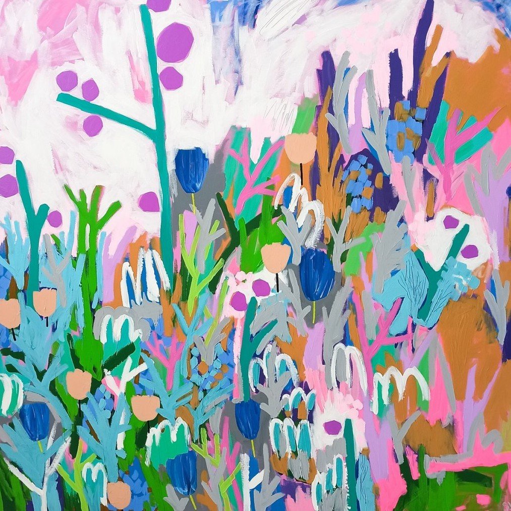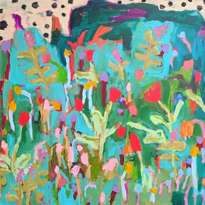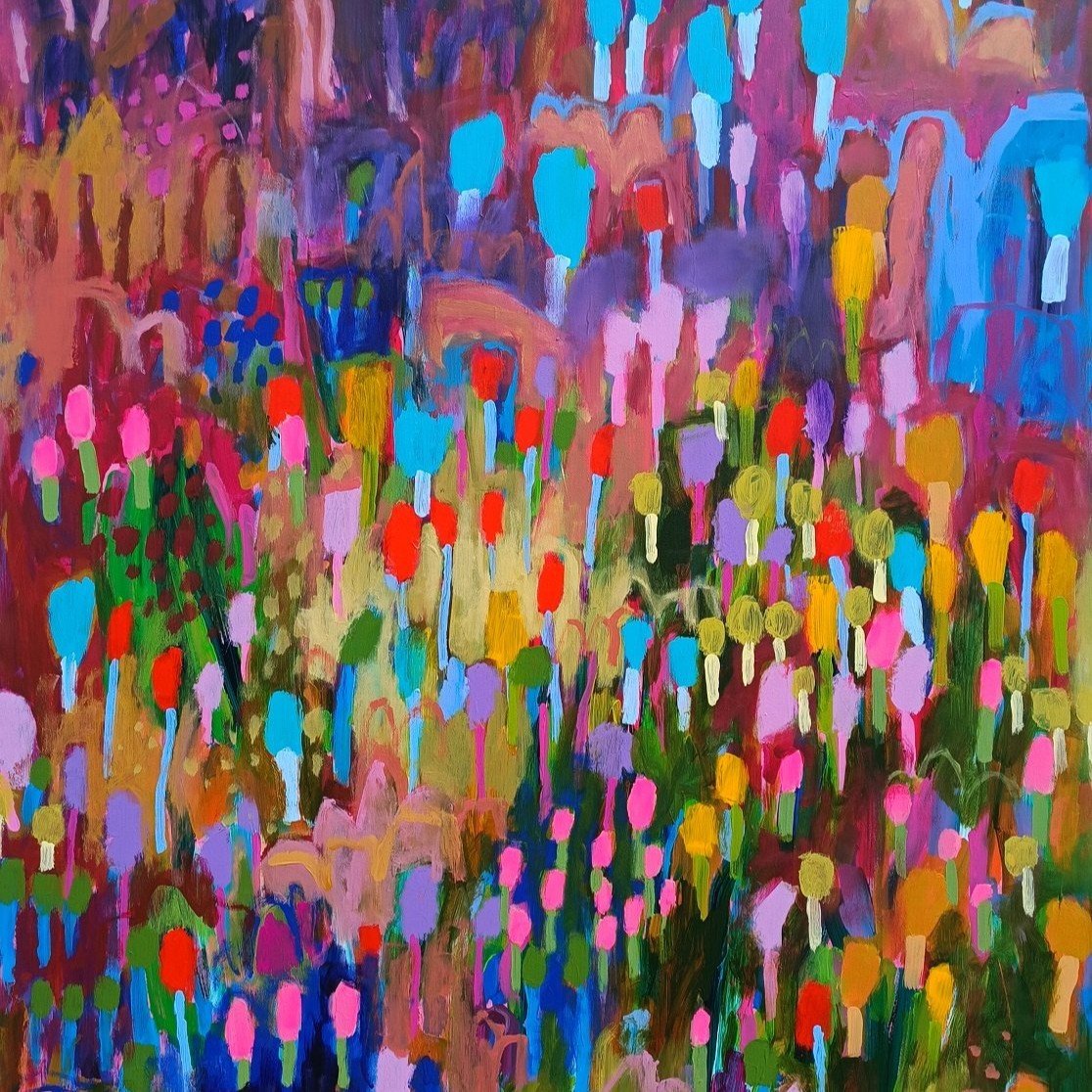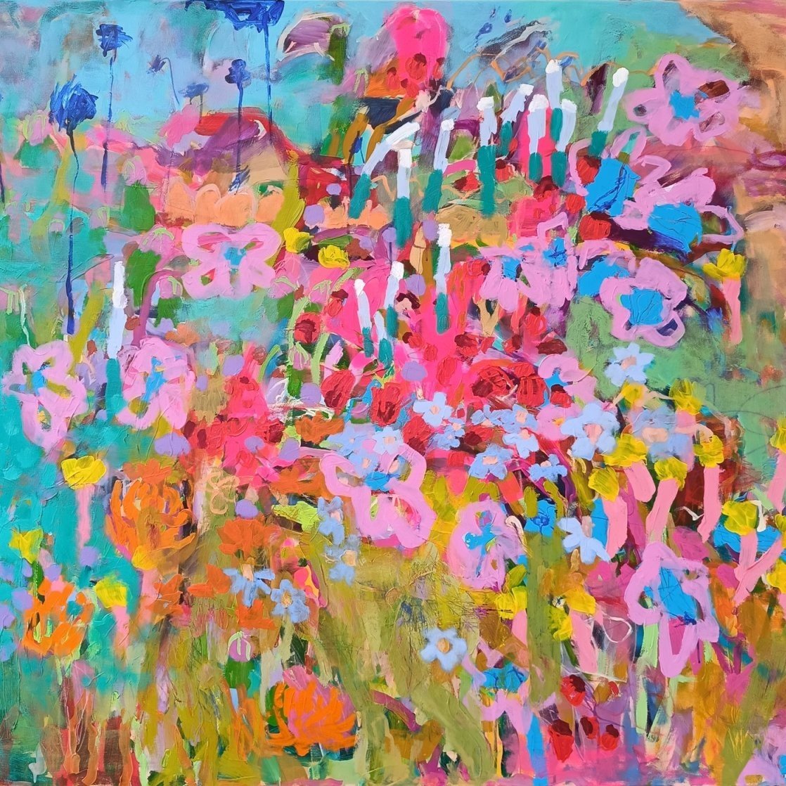 Postupně jsem ale začala objevovat motivy, které se později staly důležitou součástí mé tvorby – především abstraktní květinové louky. Mezi první takové obrazy, u kterých jsem pocítila, že jsem na správné cestě, patřil obraz Spring nebo obraz Childhood.