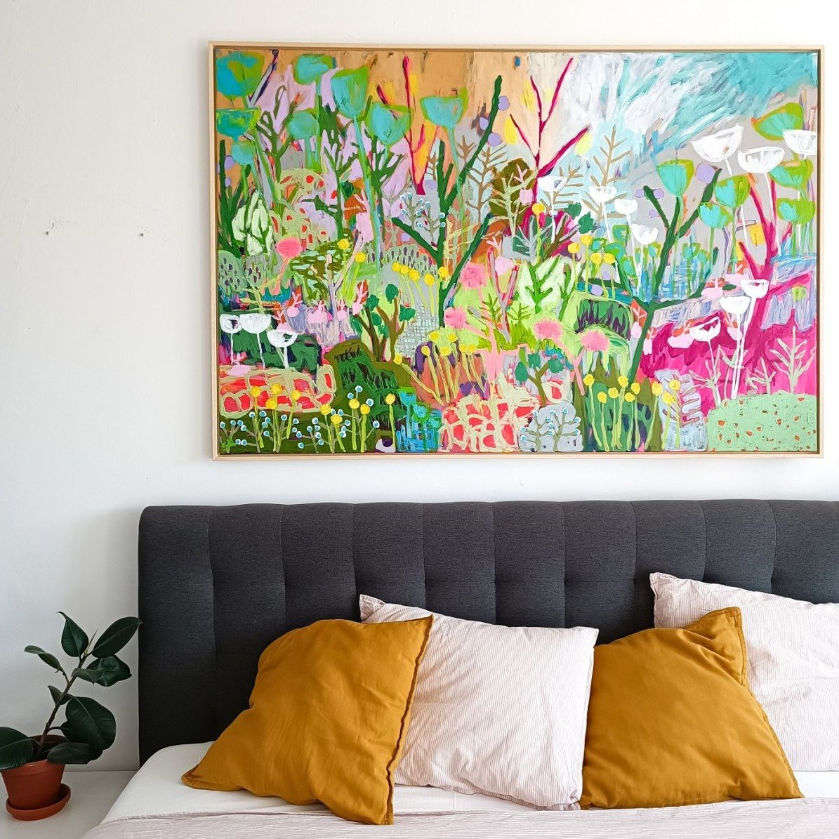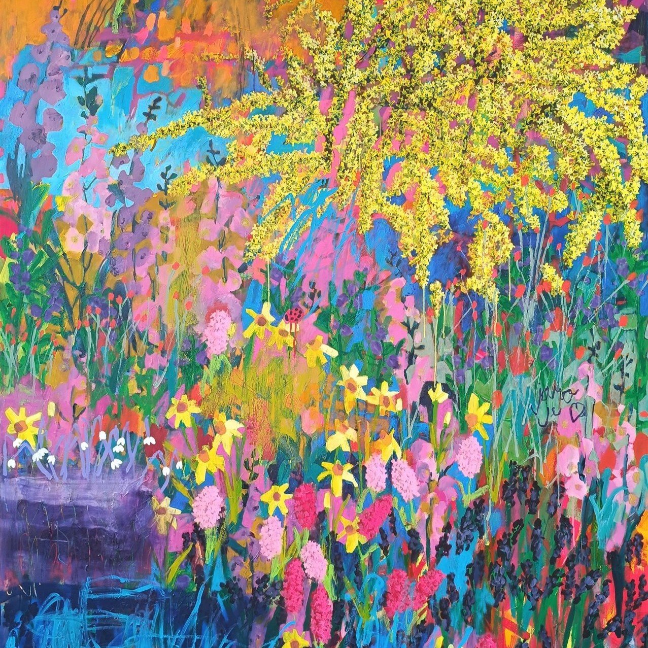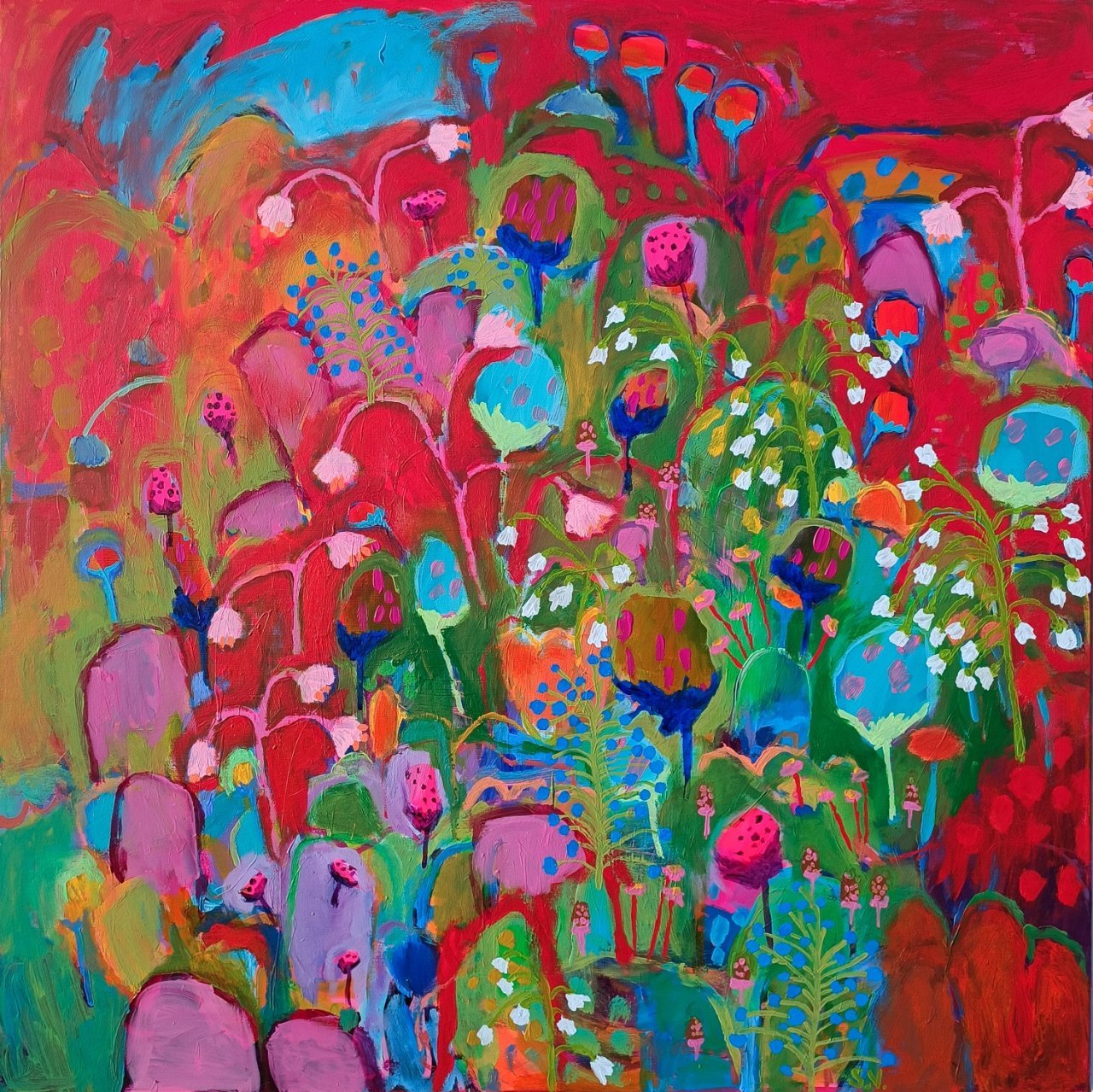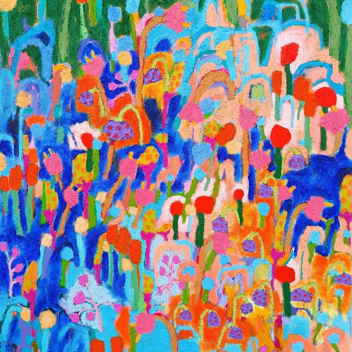 Postupně jsem ale začala objevovat motivy, které se později staly důležitou součástí mé tvorby – především abstraktní květinové louky. Mezi první takové obrazy, u kterých jsem pocítila, že jsem na správné cestě, patřil obraz Spring nebo obraz Childhood.