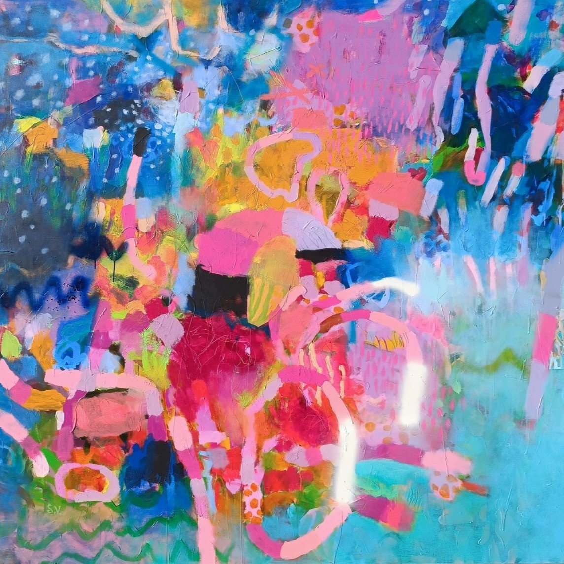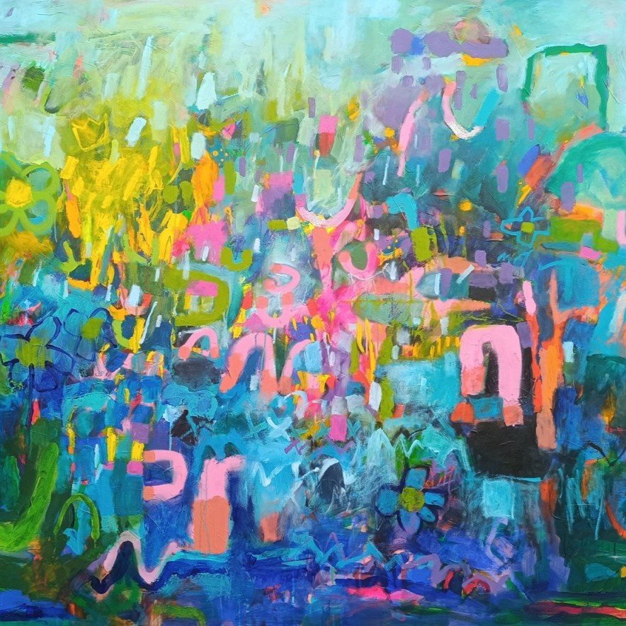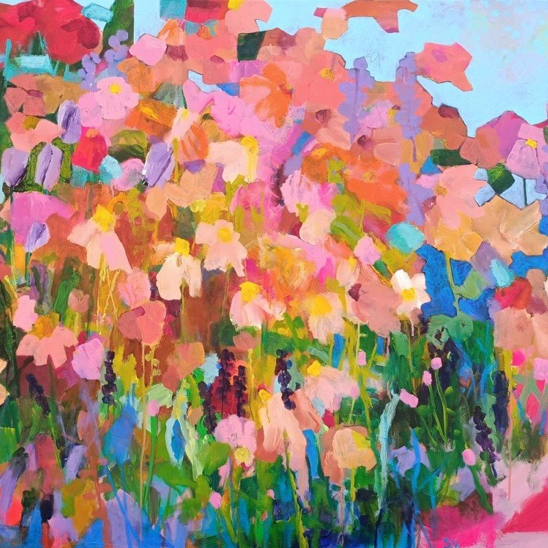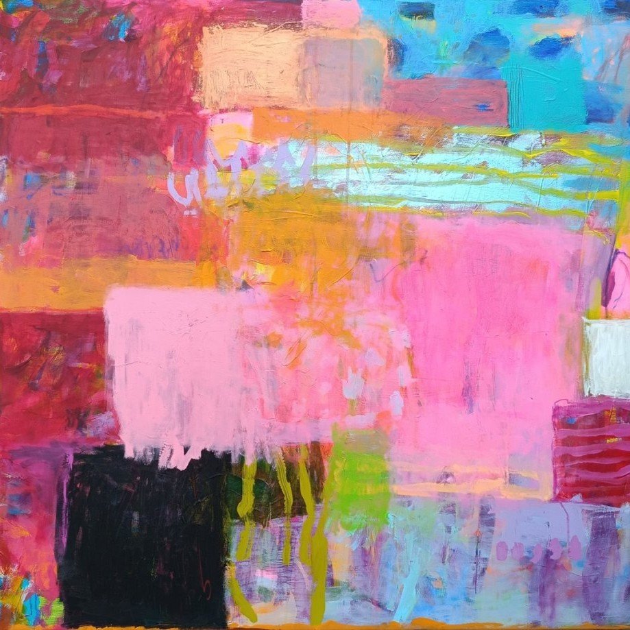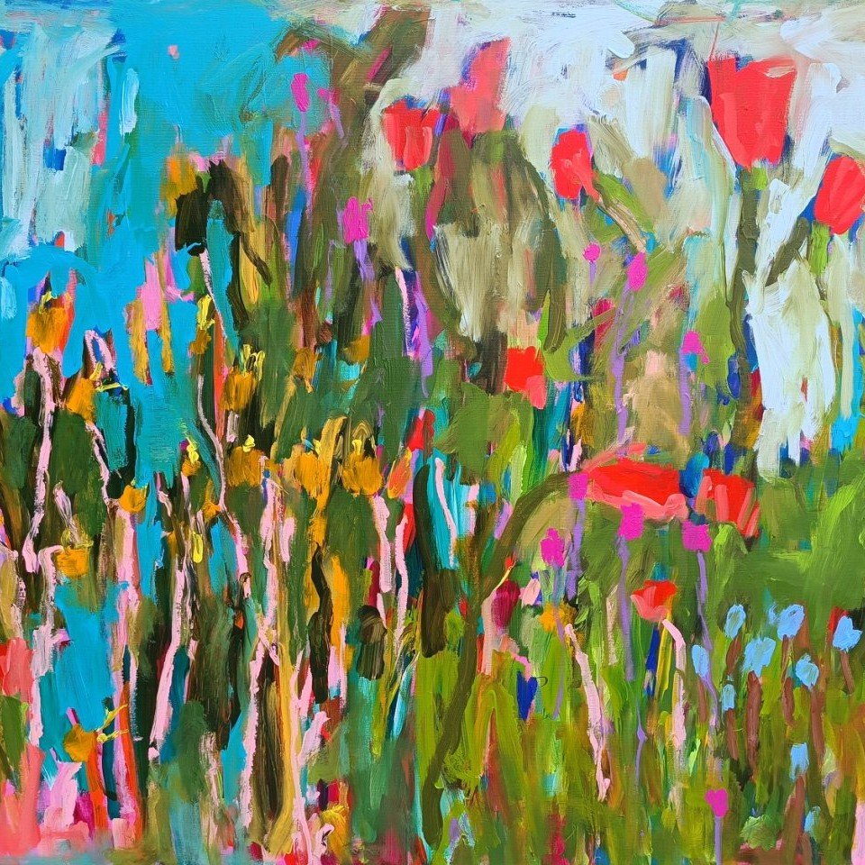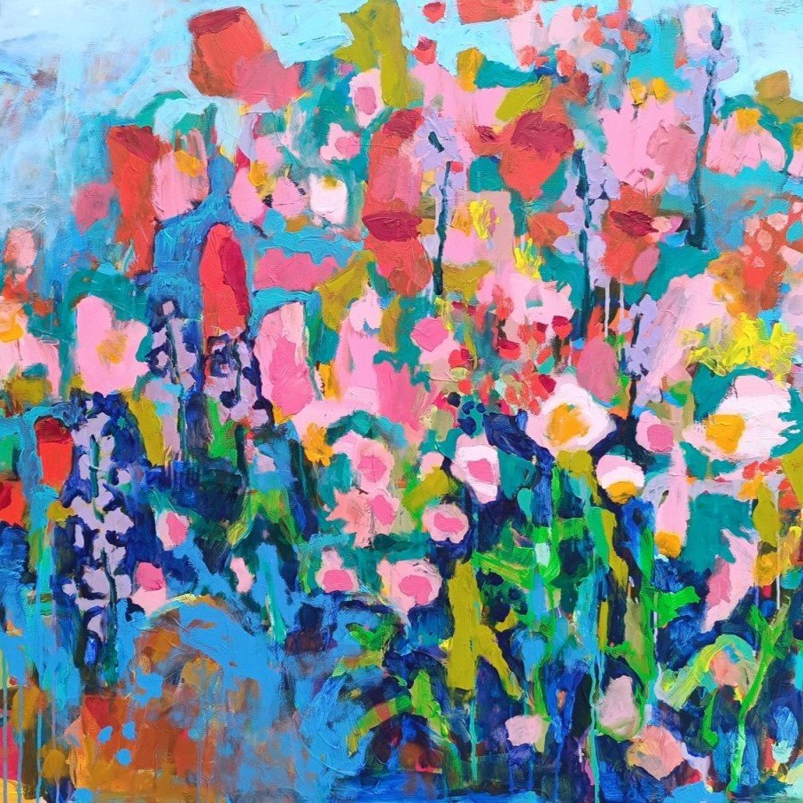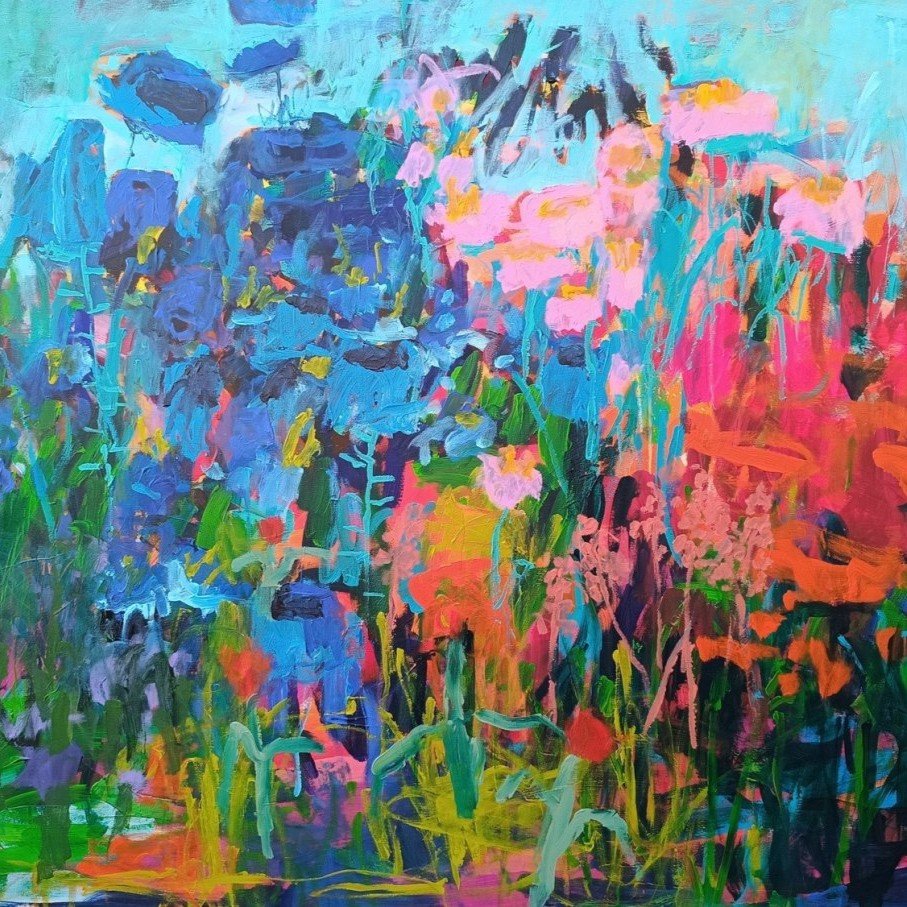 Vedle květinových luk jsem se občas vracela také k čisté abstrakci. Tyto obrazy byly v té době opravdu velmi volné a nepřipomínaly krajinu ani konkrétní motivy – šlo spíše o práci s barvou, rytmem a kompozicí. Příkladem je obraz Another Story, který má 100 x 100 cm.
