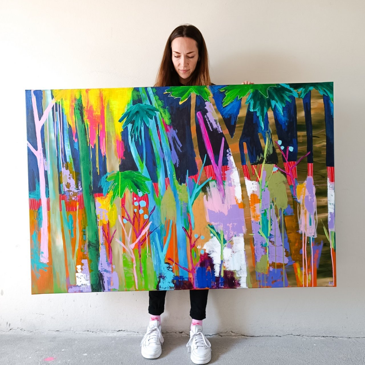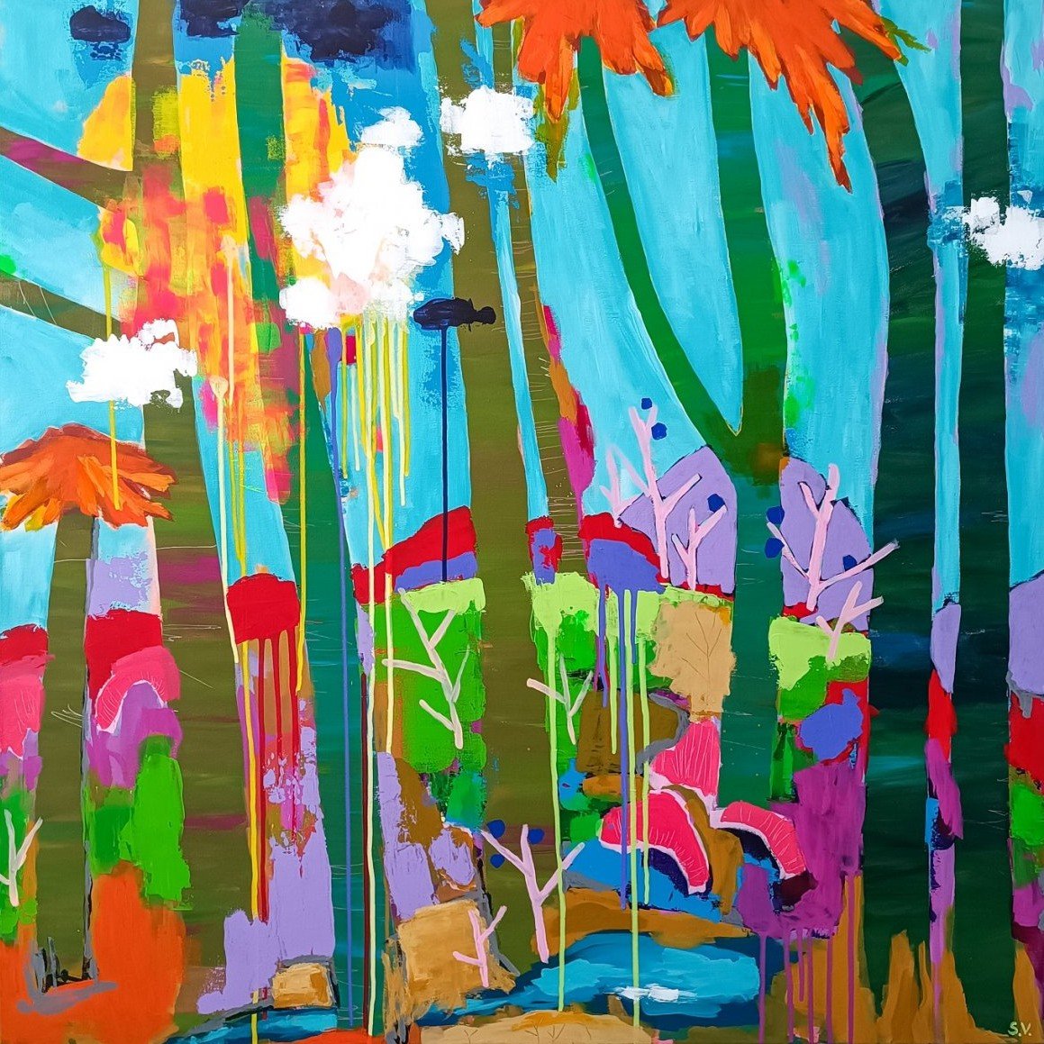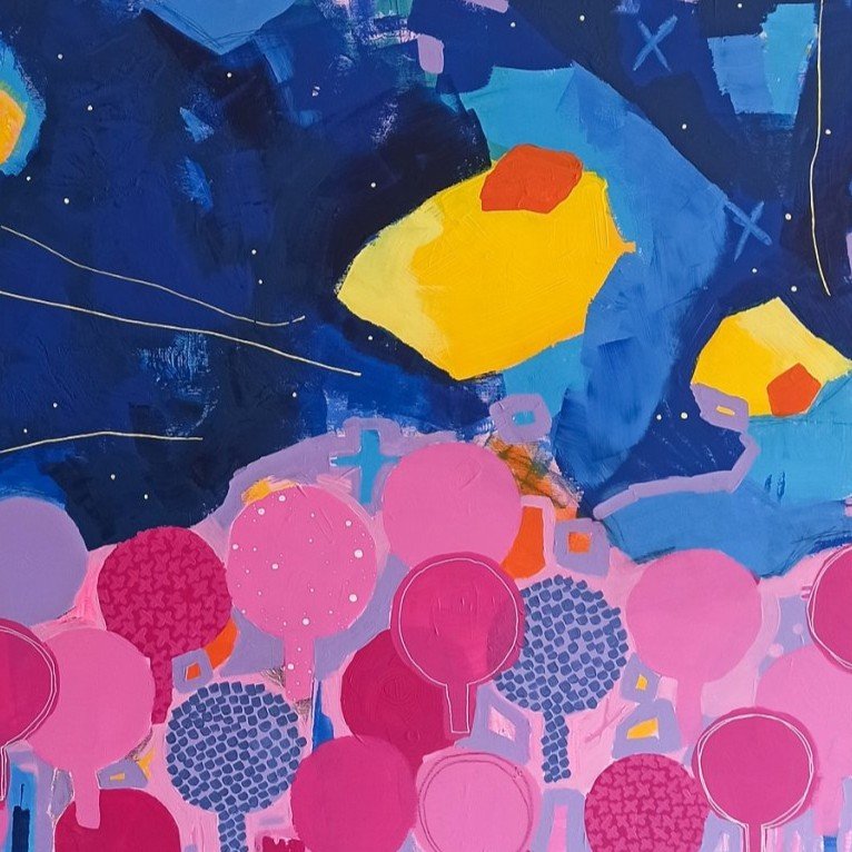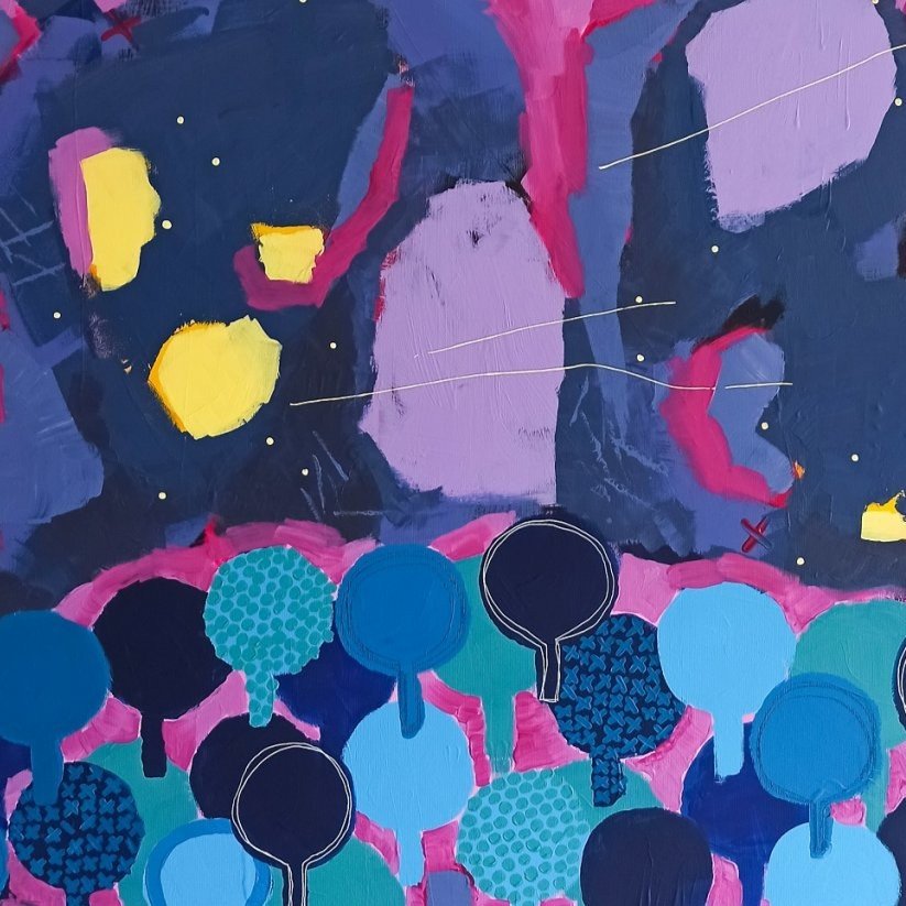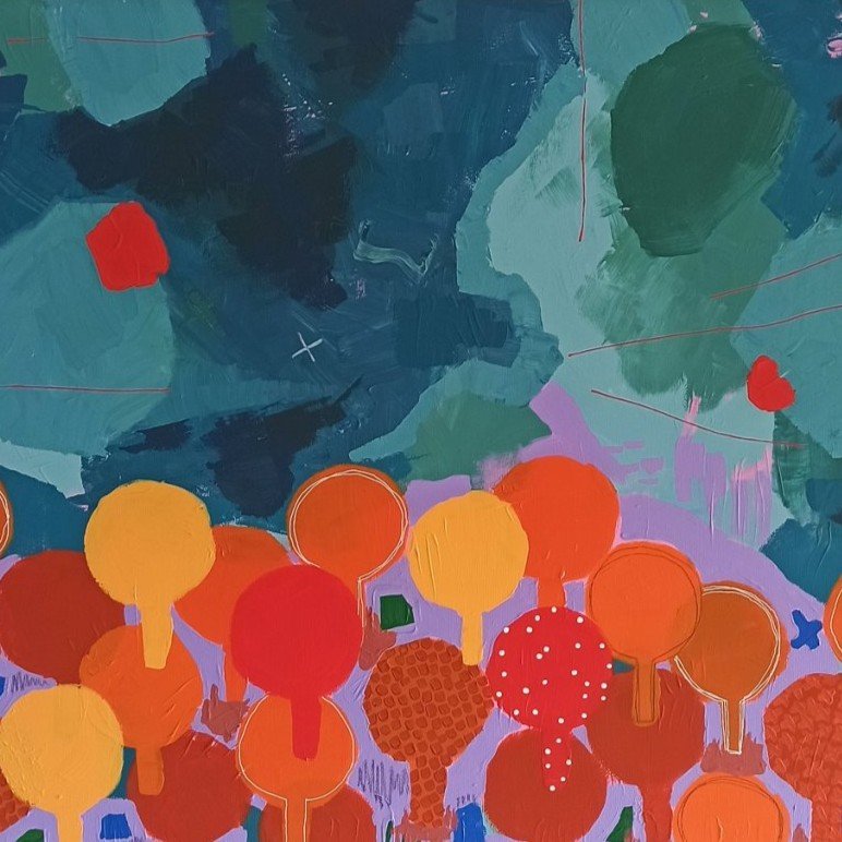 Rok 2021 byl pro mou tvorbu zásadní. První obrazy, se kterými jsem začala veřejně vystupovat, byly barevné „stromové“ motivy – obrazy plné rytmu, vrstvené struktury a výrazných barevných kombinací. Mnozí jim s nadsázkou říkali „lízátka“, ale právě tato hravost a barevná energie si rychle našla své publikum.