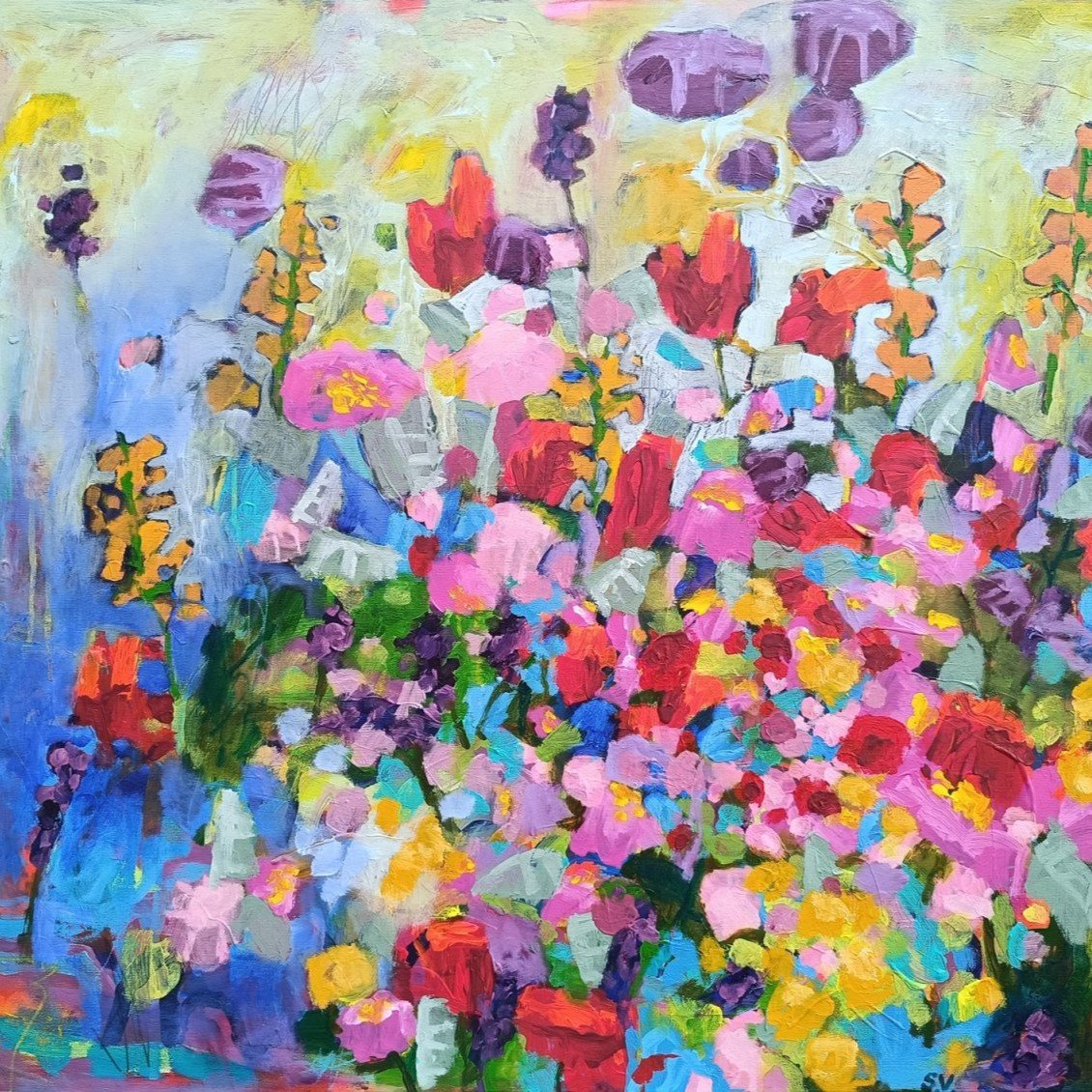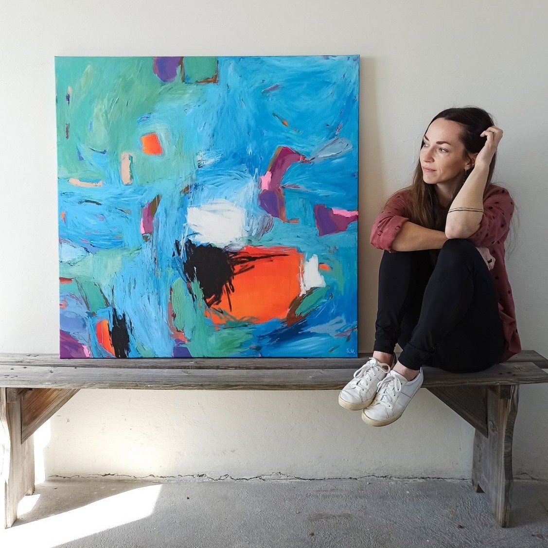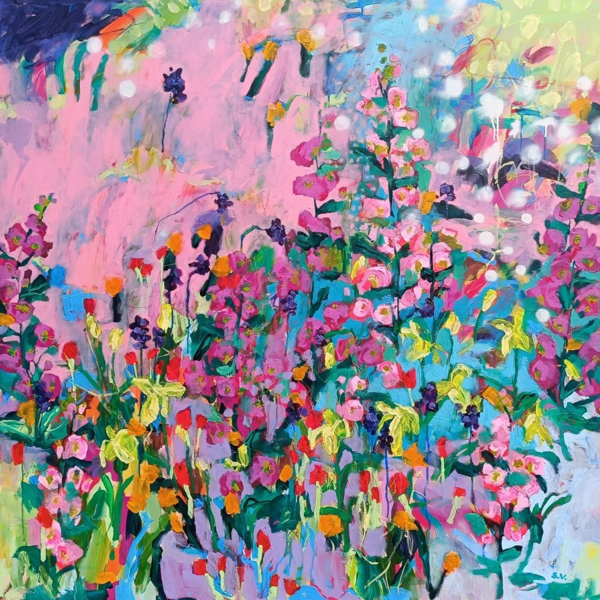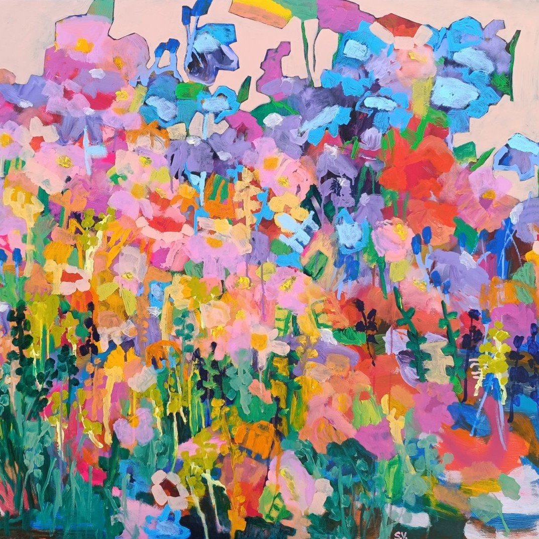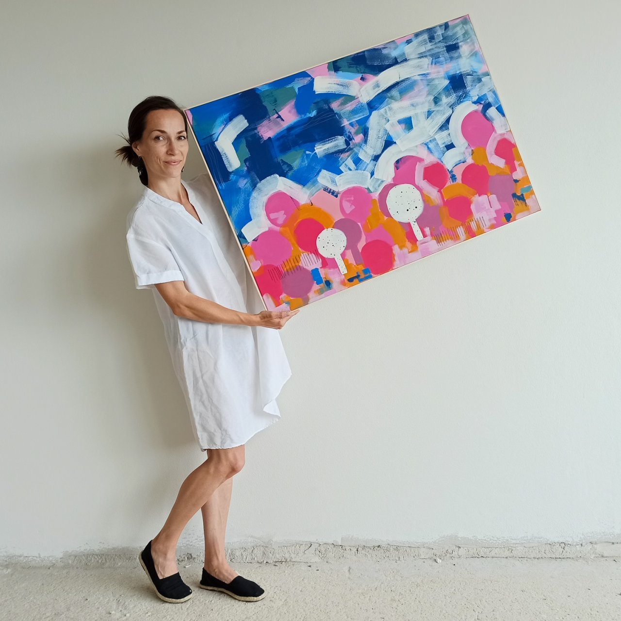 Jsem česká malířka Simona Vojtěšková a tvořím velkoformátové abstraktní obrazy inspirované krajinou a květinami.
