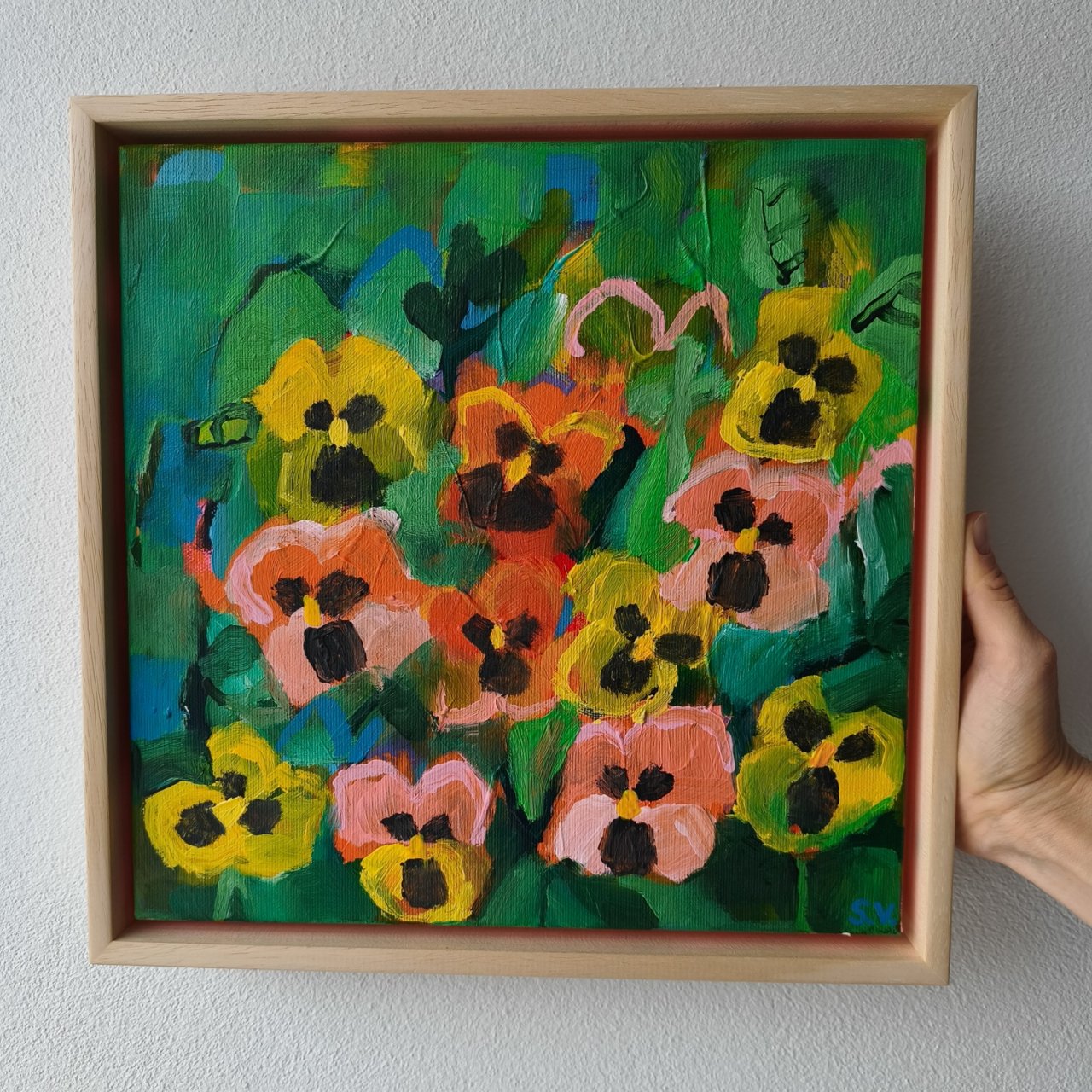 Tulip Field, 100 x 100 cm, abstraktní obraz na plátně